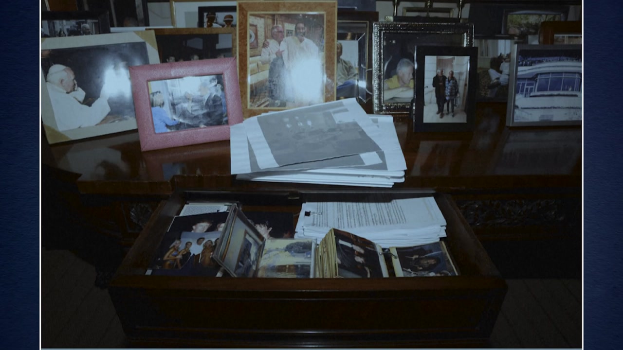 서랍에 담긴 여러 장의 사진 사이로 트럼프 대통령 부부가 엡스타인과 함께 찍은 사진이 보입니다.