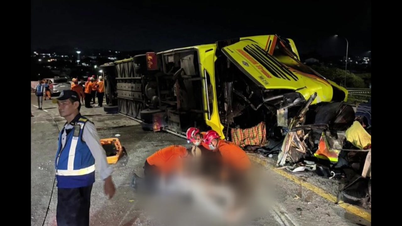 수도 자카르타에서 출발한 버스는 욕야카르타로 가던 중 곡선 도로에서 방호벽을 들이받았습니다.