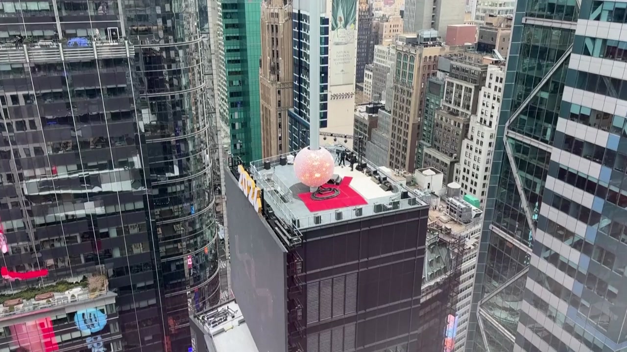 원 타임스퀘어 건물 위 기둥을 따라 6톤 무게, 지름 3.8미터의 초대형 LED 크리스털 볼이 내려오며 새해를 상징하는 2026을 밝혔습니다.