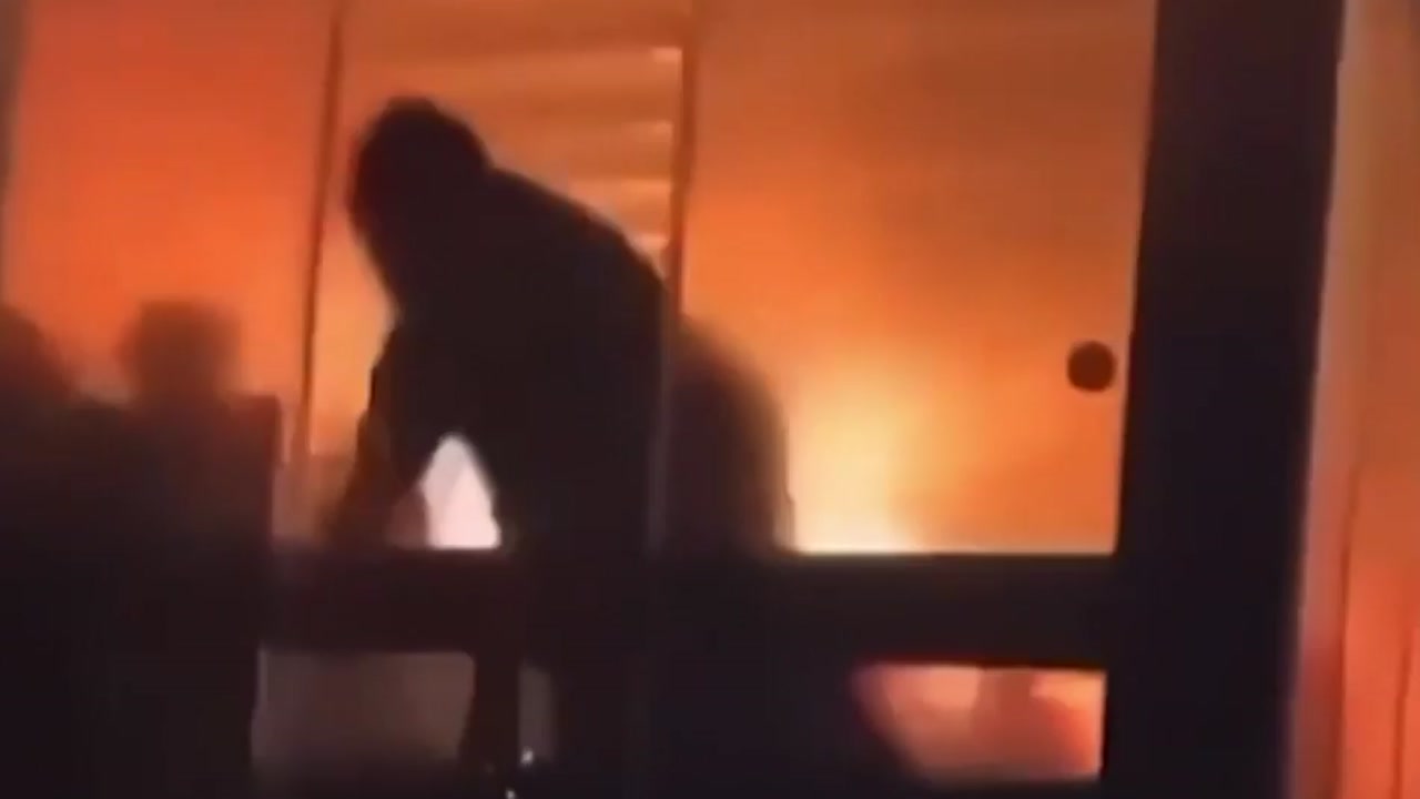 시뻘건 불길이 순식간에 번지자, 사람들이 우왕좌왕하며 다급하게 탈출합니다.