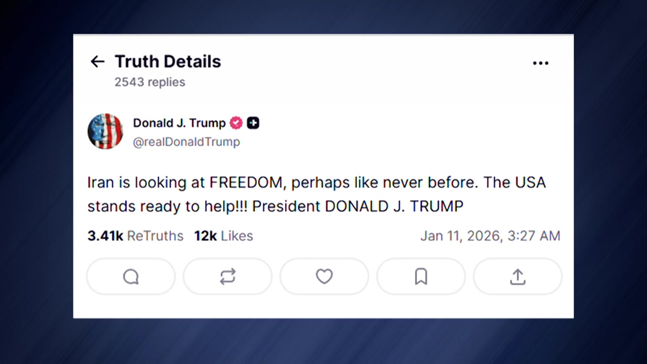 트럼프 대통령은 현지 시간 10일 소셜미디어에 "이란은 어쩌면 과거 어느 때보다 자유를 바라보고 있다. 미국은 도울 준비가 됐다"고 짧게 썼습니다.