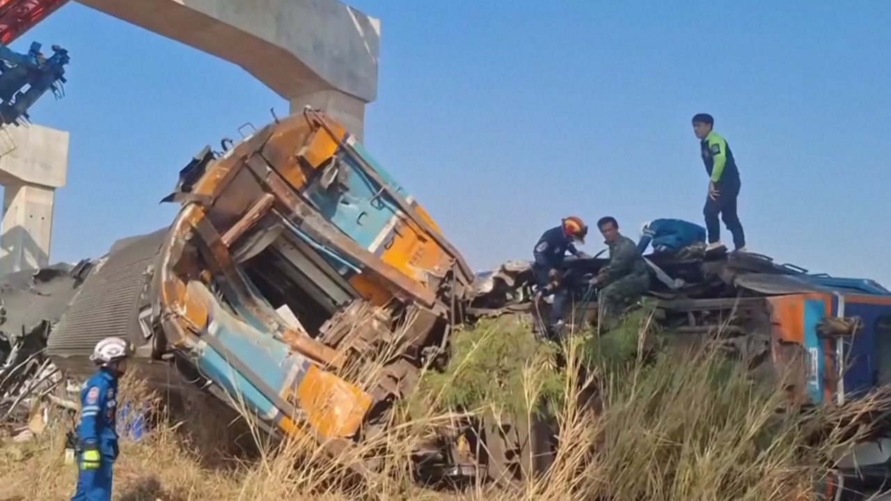 태국 중부의 고속철도 공사 현장에서 대형 크레인이 무너져 마침 그 아래를 시속 120km로 지나가던 열차를 덮쳤습니다.