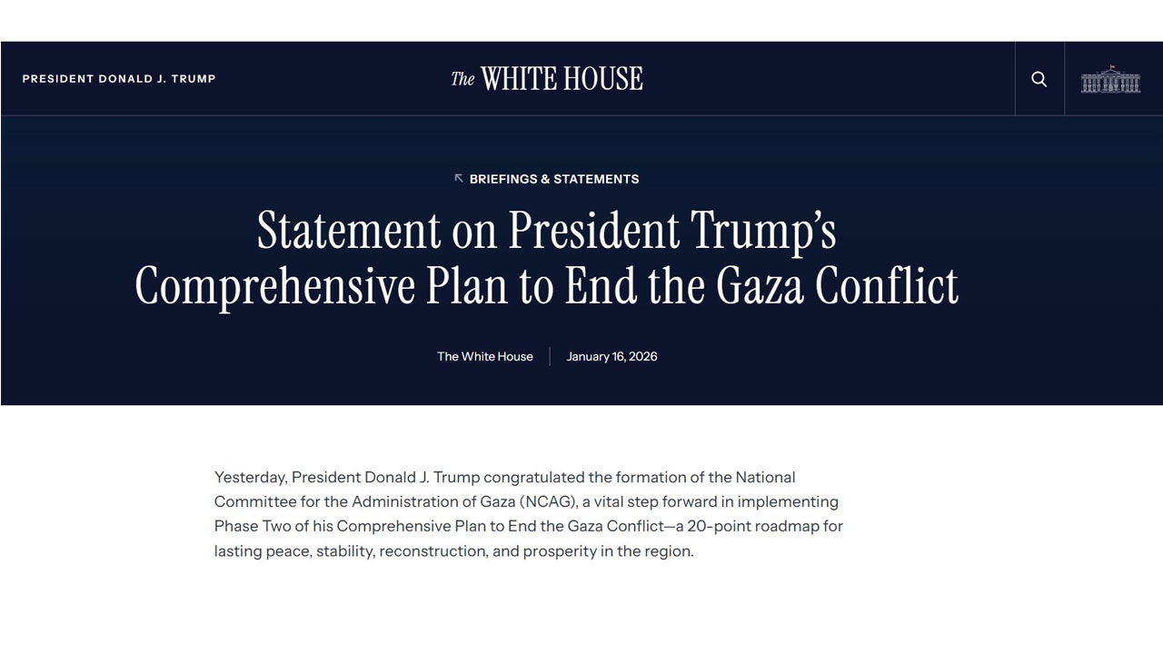 평화위원회 구성은 트럼프 대통령의 가자지구 평화구상이 1단계를 넘어 2단계에 진입한 것을 의미합니다.