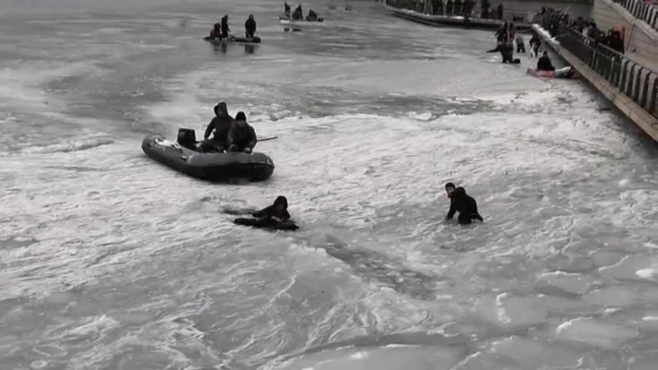 일부는 빙판 위에 직접 올라갔다가 얼음물에 빠지기도 합니다.