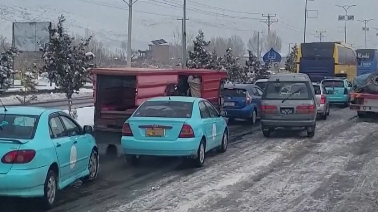 영하의 강추위 속에 고속도로가 거대한 주차장으로 변했습니다.