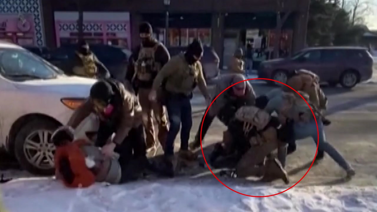 그러다 요원 한 명이 여성 시위자를 강하게 밀치자 프레티는 이를 막아섰고, 단속 요원은 가스총으로 보이는 것을 발사한 뒤 프레티와 시위 여성을 온몸으로 강하게 제압합니다.