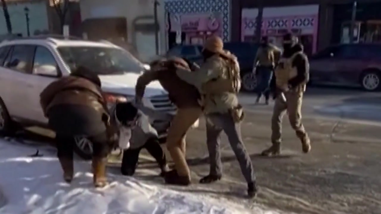 지난 24일, 미국 이민 단속 요원들이 시위에 참여했던 30대 백인 남성을 땅에 넘어뜨리고 제압합니다.