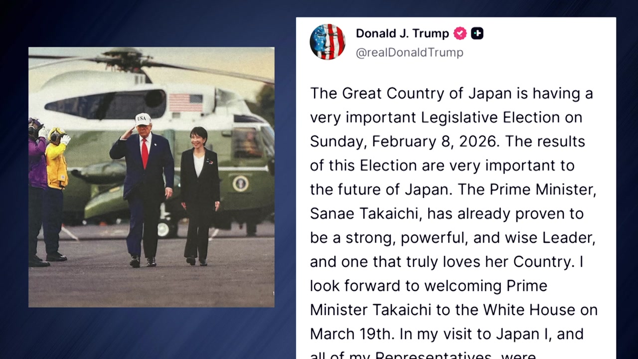 일본 총선을 앞두고 트럼프 대통령이 다카이치 사나에 총리를 전면적으로 지지한다고 밝혔습니다.