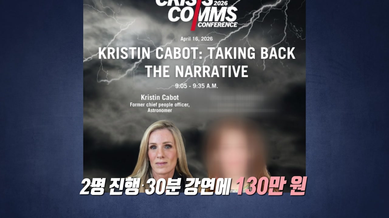 캐벗은 오는 4월 워싱턴에서 30분간 진행되는 PR위크 위기관리 콘퍼런스에 2명의 강연자 중 1명으로 무대에 오릅니다.