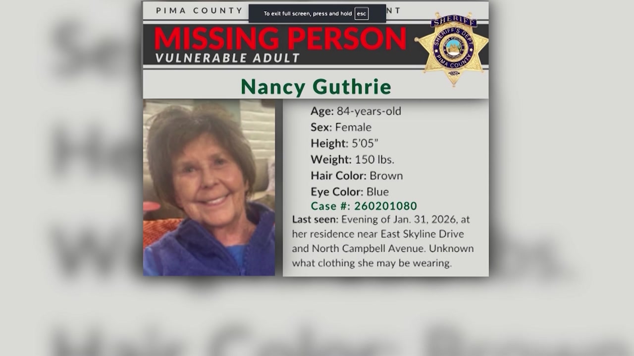 미국 언론들은 미국 NBC 간판 프로그램 ’투데이’의 앵커 서배너 거스리의 모친 낸시 거스리가 지난달 31일 밤 애리조나주 투손의 자택에서 사라진 뒤 행방이 묘연한 상태라고 보도했습니다.