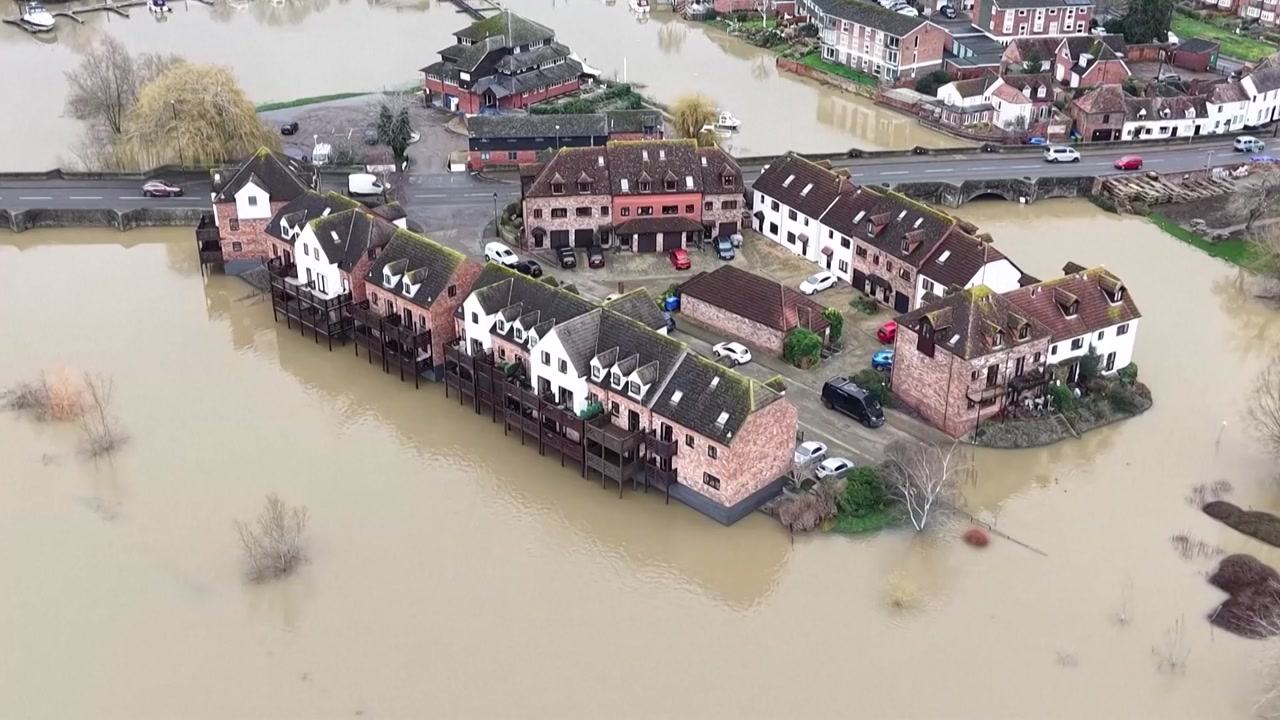 영국 남서부 지역 폭우로 세번 강이 범람하면서 글로스터셔주 튜크스베리 일대가 침수됐습니다.