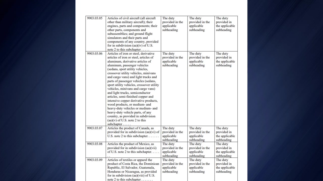 또 특정 전자제품과 자동차, 특정 항공우주 제품 등도 관세 제외 품목으로 명시했습니다.
