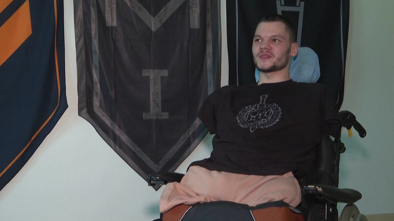 휠체어에 몸을 의지한 채 살아가는 20살 루슬란 크니쉬 씨.