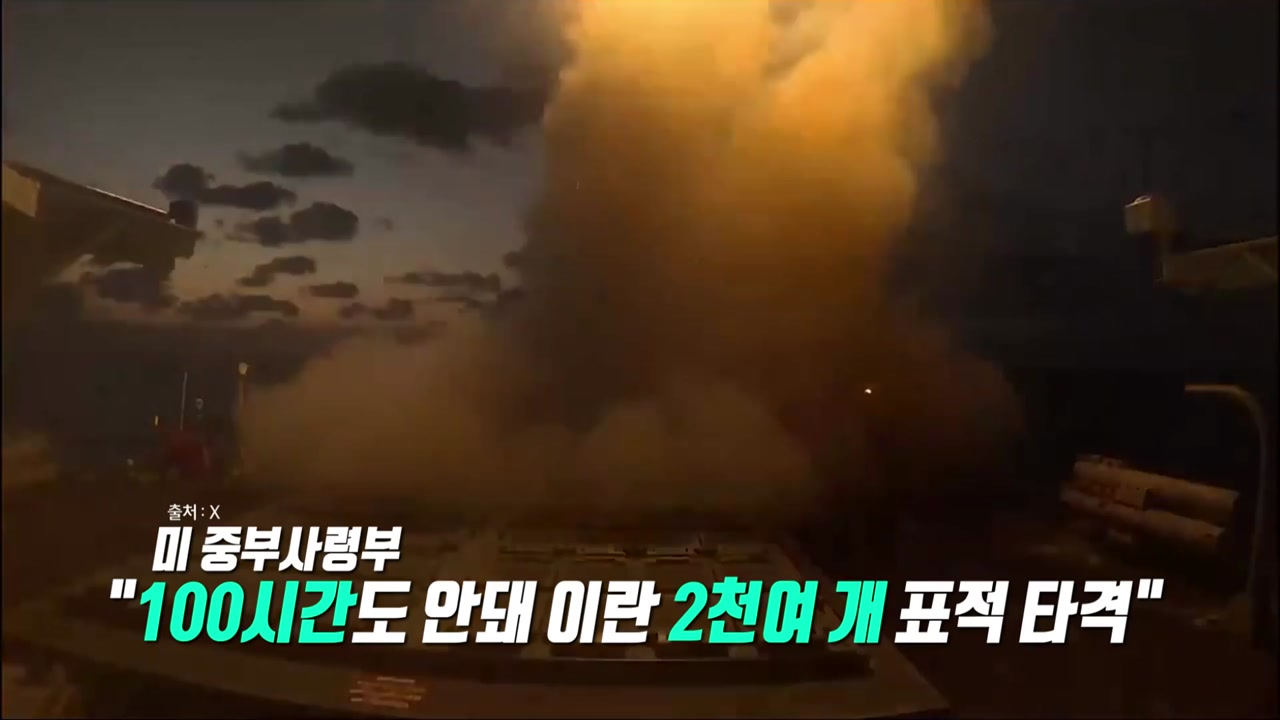 이어 "우리는 해저부터 우주, 사이버 공간에 이르기까지 이란에 쉬지 않고 공격을 계속하고 있다"며 "작전 개시 100시간도 채 되지 않은 현재, 우리는 이미 2천여 개의 표적을 타격했다"고 밝혔습니다.