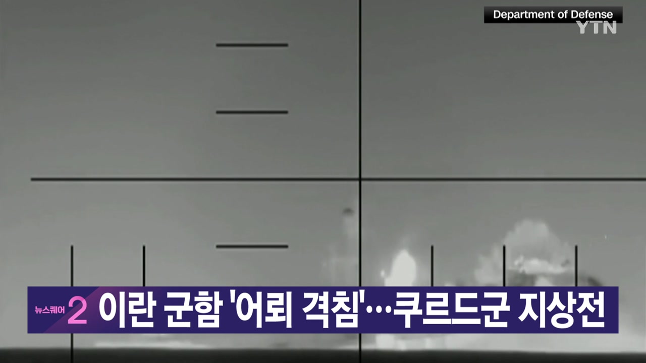 ■ 미국이 인도양 공해상에서 잠수함 어뢰로 이란 군함을 격침하는 영상을 공개했습니다. 이라크 쿠르드 반군이 미국의 요청을 받아 지상전을 개시했다는 보도가 나왔습니다.