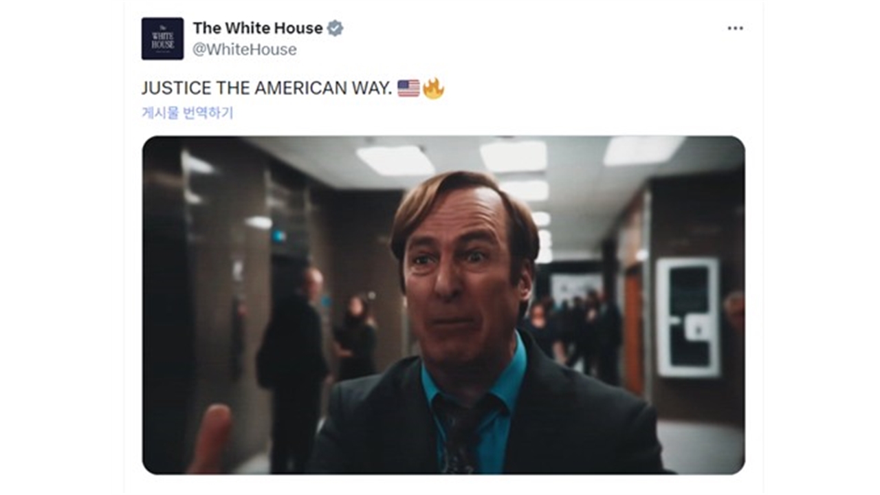 백악관은 소셜미디어 엑스(X·옛 트위터) 공식 계정에 '미국식 정의'라는 문구와 함께 42초 분량의 홍보 영상을 공개했습니다.