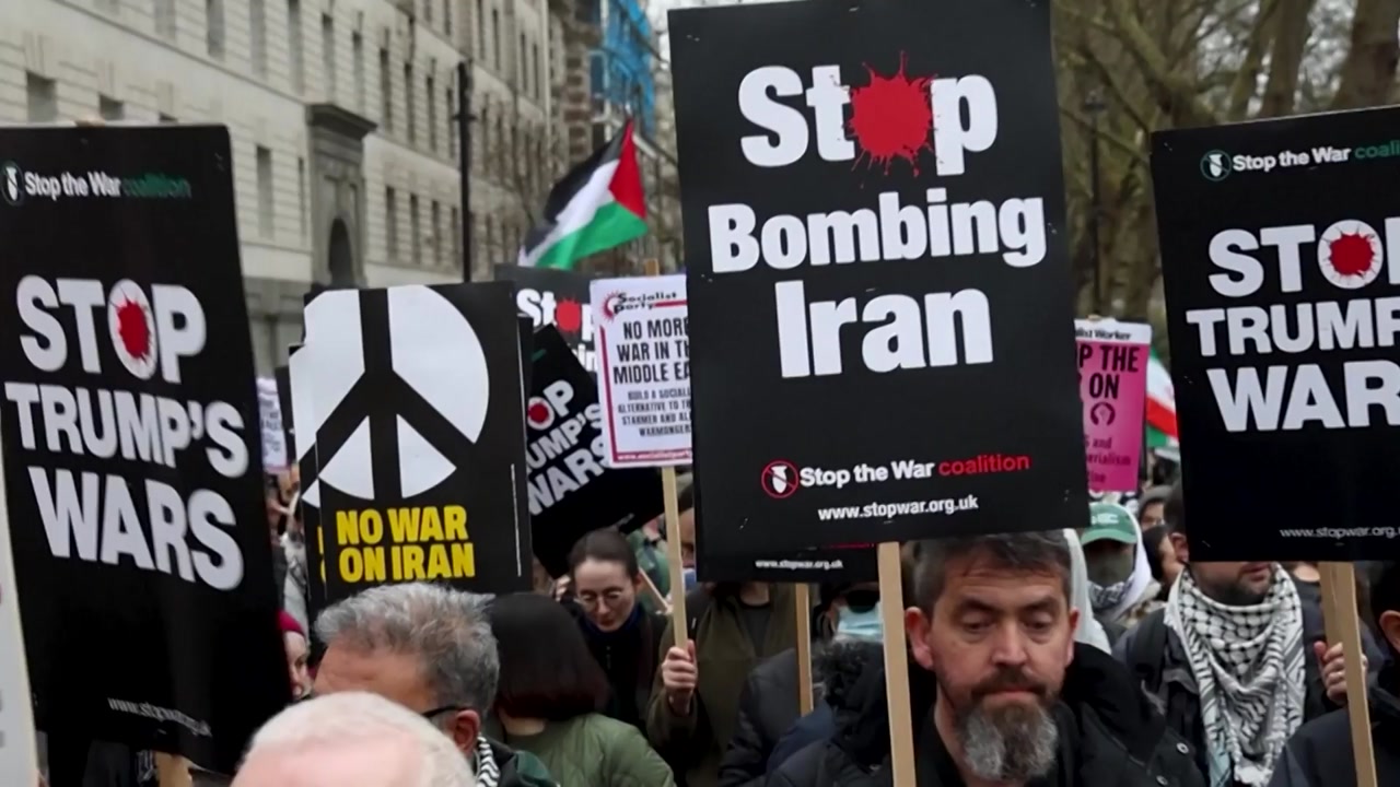 영국 런던에서는 시위대 수천 명이 미국 대사관 앞으로 몰려가 부당한 공격이라며 당장 전쟁을 멈추라고 요구했습니다.