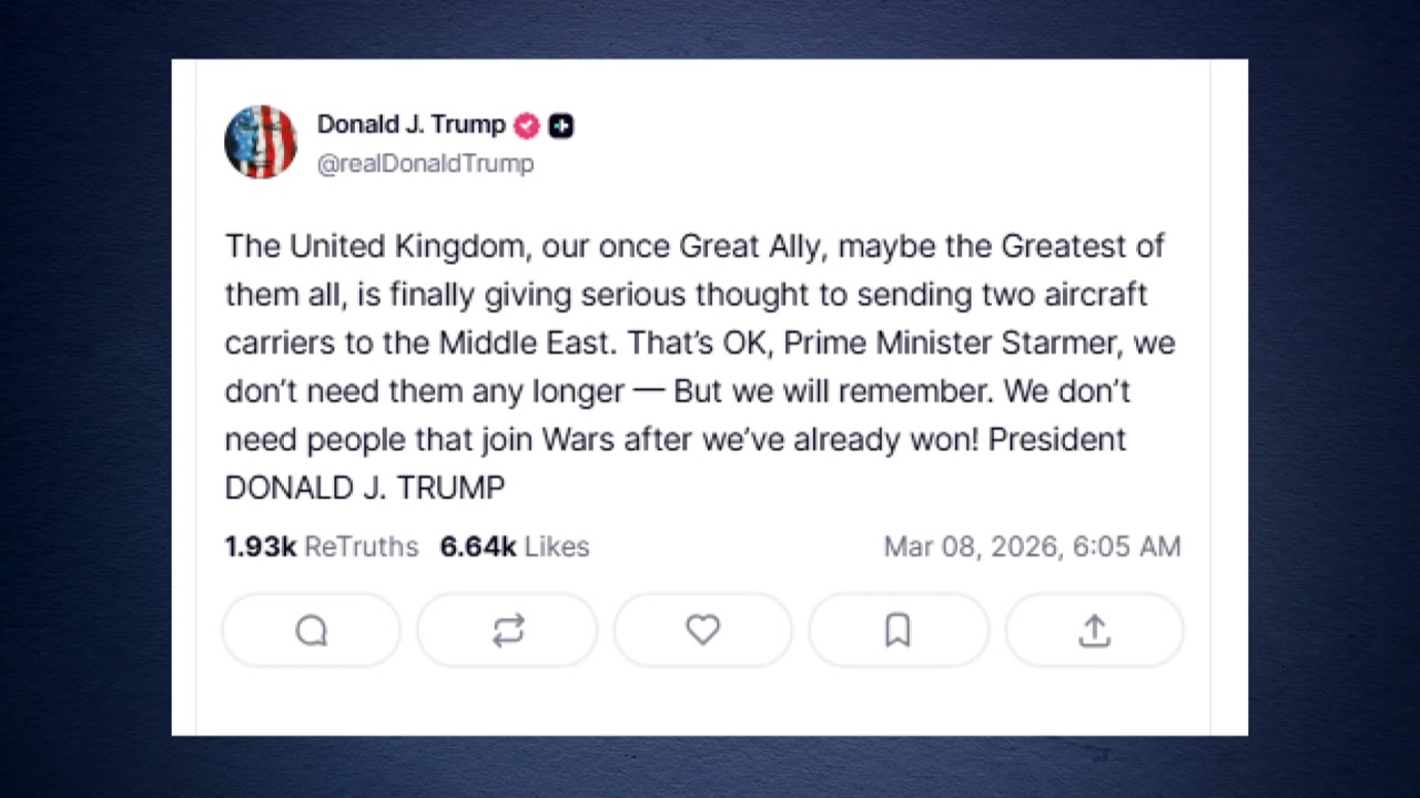 트럼프 대통령은 현지 시간 7일 SNS에서 "한때 가장 위대한 동맹국이었던 영국이 이제야 중동에 항공모함 두 척을 보내는 것을 고려하고 있다"며 "키어 스타머 총리님, 괜찮습니다"라고 썼습니다.