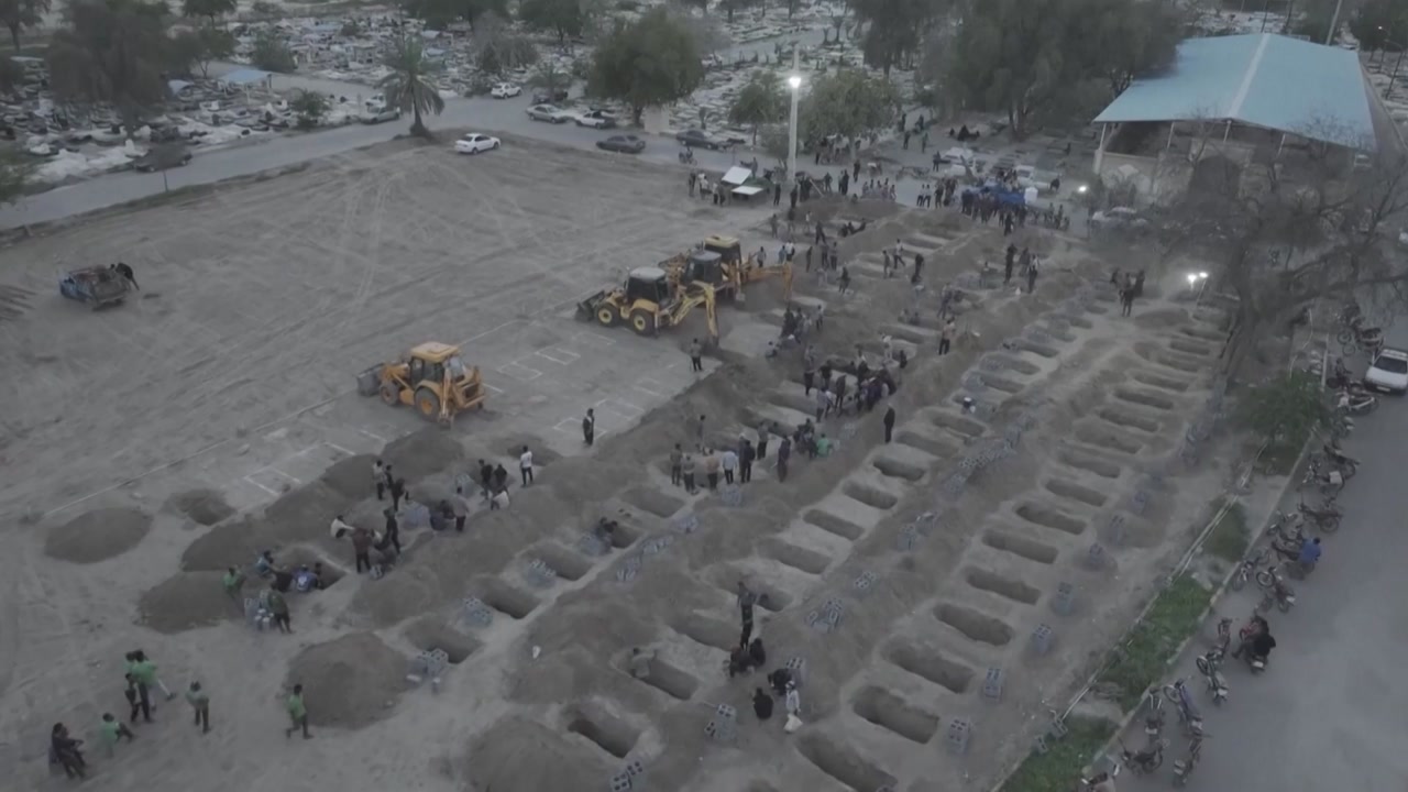 이란 남부 도시 미나브에서 벌어진 초등학교 공습으로 숨진 학생들의 무덤을 만드는 겁니다.