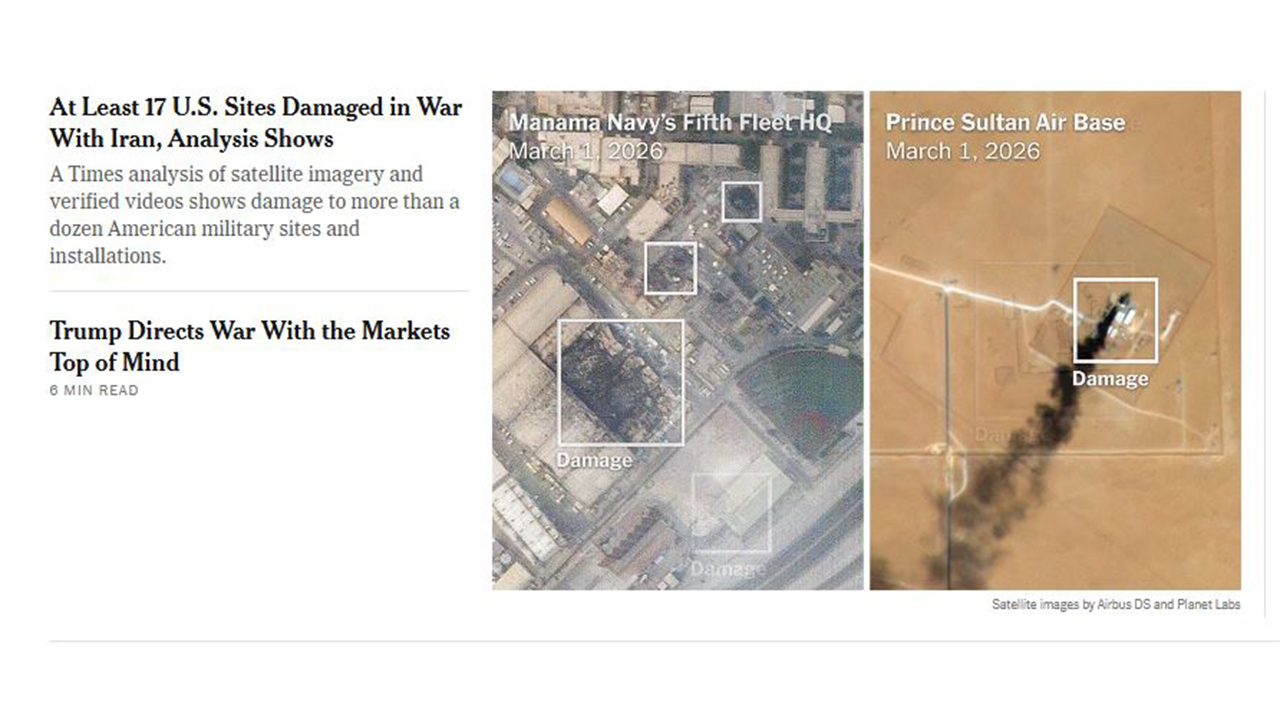 이란과의 전쟁으로 중동 전역의 미국 군사·외교 시설 최소 17곳이 피해를 본 것으로 나타났다고 미 일간 뉴욕타임스가 보도했습니다.