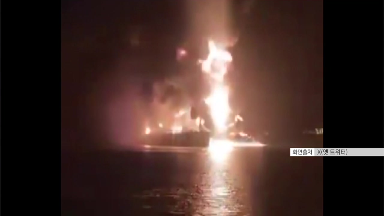 선박 관계자는 YTN에, 화염이 이틀째 이어지고 있다며 항구가 잠정 폐쇄된 상태라고 말했습니다.