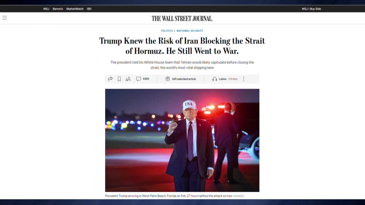트럼프 미국 대통령이 이란의 호르무즈 해협 봉쇄 가능성을 미리 보고받고도 이란 공격을 승인했다고 미 일간 월스트리트저널(WSJ)이 보도했습니다.