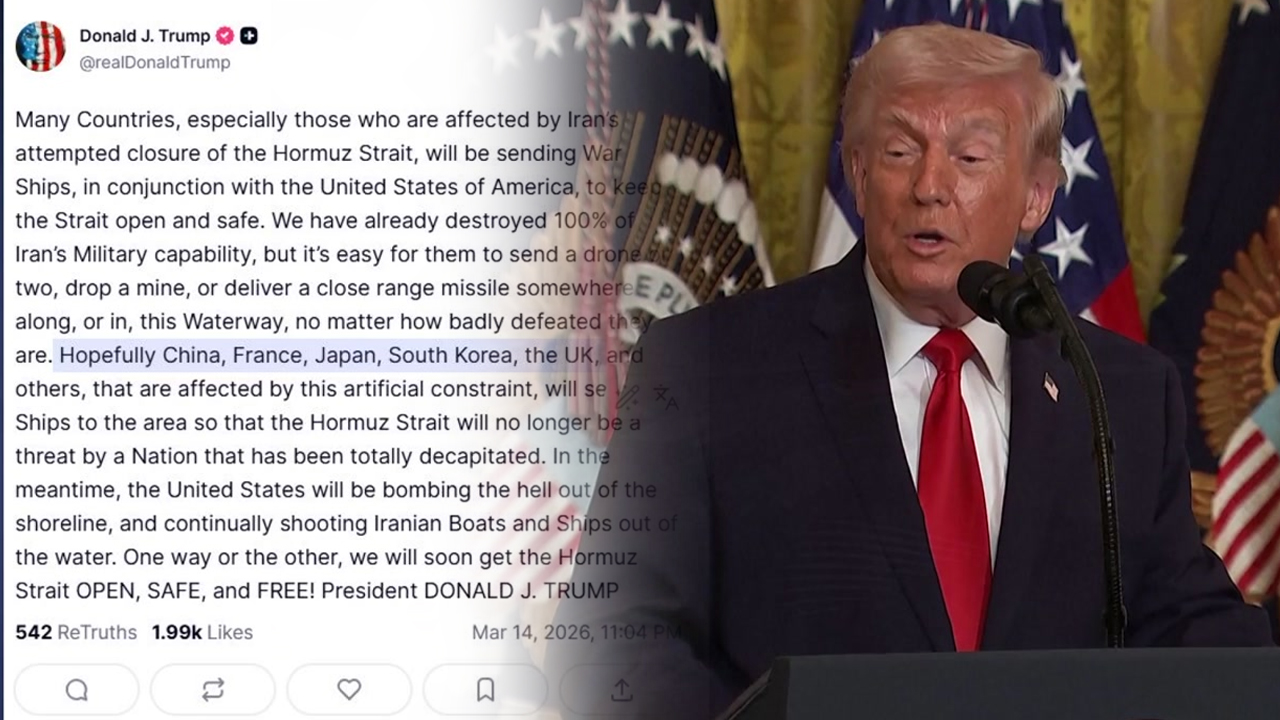 간밤에 나온 트럼프 대통령의 발언부터 지켜봐야 할 것 같습니다. 호르무즈 해협에한국을 포함한 5개국의 군함 파견을 사실상 요구했습니다. 동맹국을 참전시키려는 의중을 드러냈는데,어떻게 보십니까?