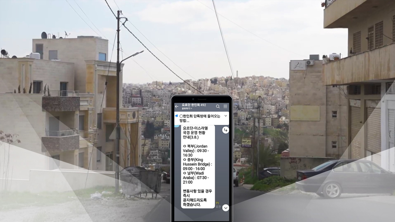 [임경숙 / 요르단 동포·여행사 운영 : 기본적으로 한인회와 또 대사관이 단체 카톡방이 연결이 돼 있어서 수시로 국경 상황이라든지 비행기 상황이라든지 (공유하고) 어떤 대책들도 서로 강구하면서 이제 대사관에서 최대한 동포들의 안전을 대비하고 또 준비하고 또 이러한 정부와 공조하면서 문제없도록 (하고 있습니다.)]