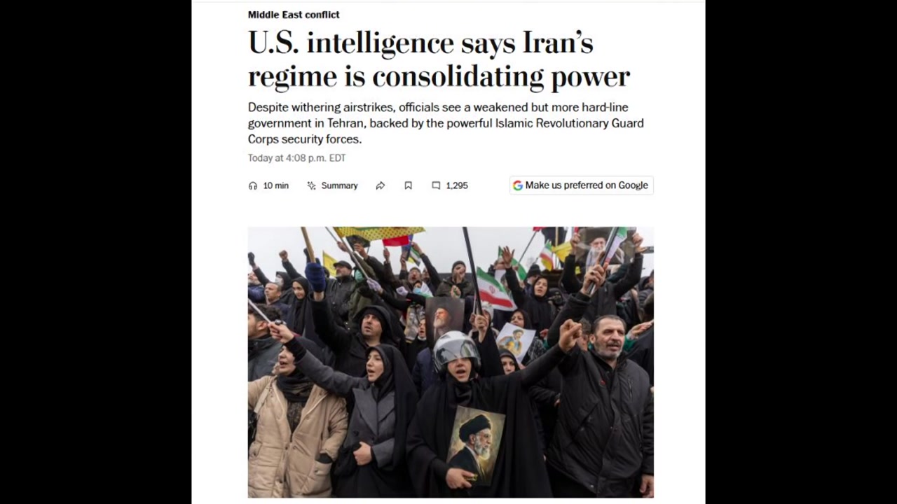 워싱턴포스트에 따르면 미 정보당국은 최근 이어진 공습에도 불구하고 이란 정권이 단기간 내 붕괴될 가능성은 낮고, 오히려 내부 결속을 강화하며 더 강경한 체제로 재편되고 있는 것으로 분석했습니다.