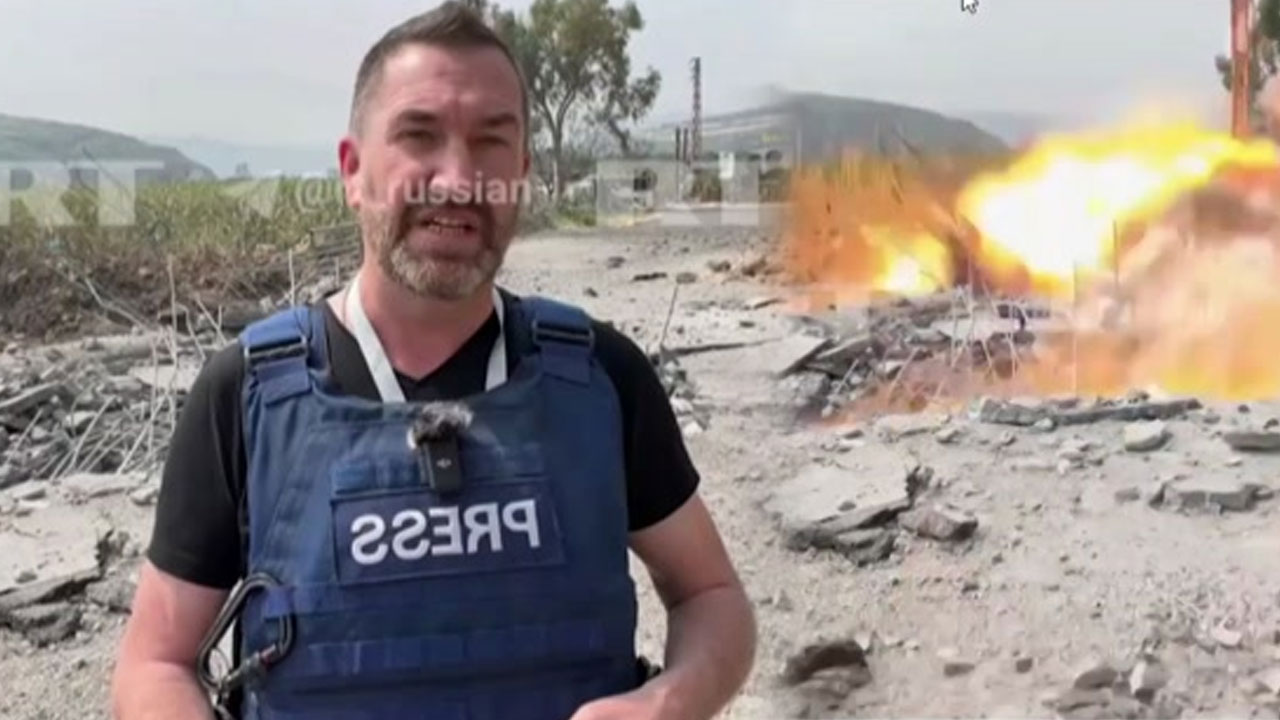 레바논에서 전쟁 상황을 생중계하던 러시아 기자 바로 뒤에 이스라엘군의 포탄이 떨어졌습니다.