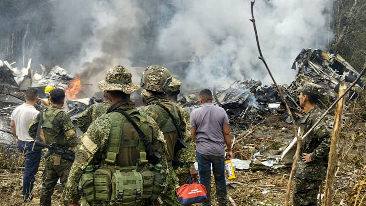 페드로 산체스 콜롬비아 국방부 장관은 사고가 페루 접경지인 아마존 남부 깊숙한 곳의 푸에르토 레기사모에서 군 병력을 이송하기 위해 이륙하던 중 발생했다고 전했습니다.