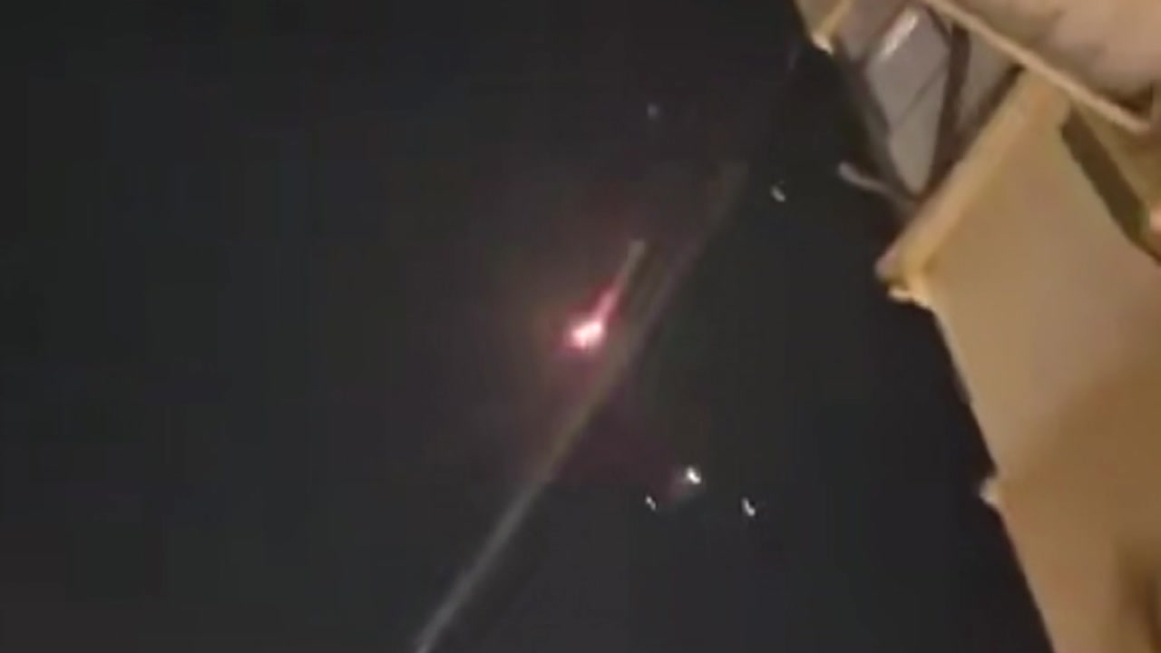 이스라엘 수도 텔아비브 밤하늘에 미사일 섬광이 어지럽게 날아다닙니다.