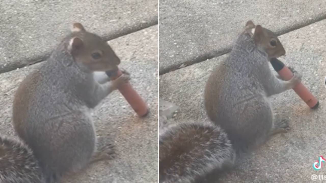 24일 텔레그래프 등에 따르면, 최근 남런던 브릭스턴에서 다람쥐 한 마리가 앞발로 전자담배를 잡고 풀라스틱 흡입구를 씹는 듯한 영상이 틱톡에 게시됐다.
