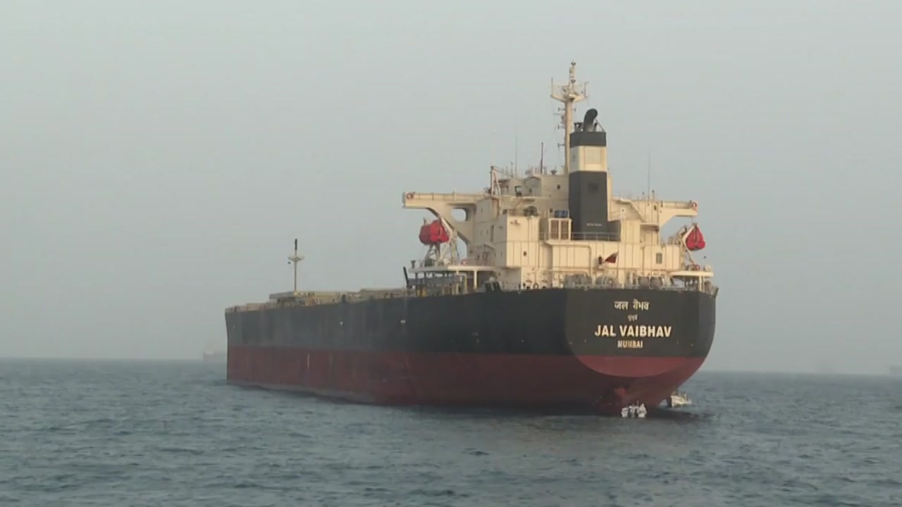 평소라면 많은 유조선이 지나는 게 보일 테지만 지금은 몇 척만이 이곳 무스카트에 있는 정유소에서 기름을 선적하기 위해 기다리는 모습이 보입니다.