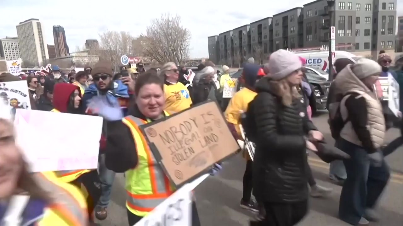 지난 1월 이민세관단속국의 이민 단속 중 미국인 2명이 연방 요원들의 총격으로 숨진 미네소타주 의회 앞 광장에는 수만 명의 인파가 모였고 배우 제인 폰더와 팀 월즈 미네소타 주지사, 버니 샌더스 상원의원도 참석했습니다.