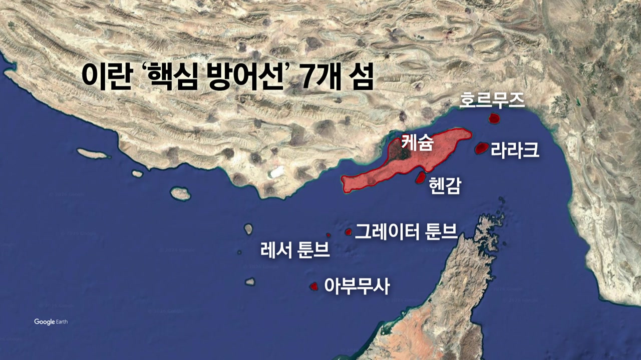 아치형으로 자리하고 있는 이 섬들은 호르무즈를 지키는 핵심 방어선 역할을 해서 '떠 있는 항공모함'으로도 불립니다.