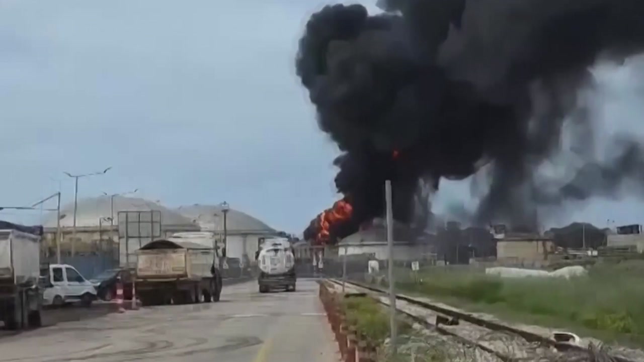 이스라엘 북부 하이파 정유공장에서 불길이 치솟습니다.
