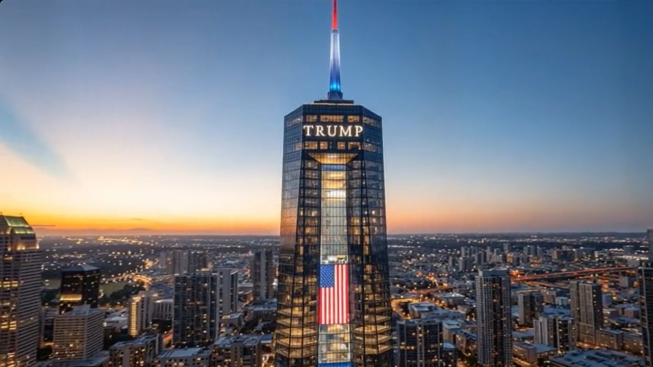 트럼프 대통령은 플로리다주 마이애미 시내에 건설 예정인 대통령 기념관의 조감도 영상을 공개했는데 100초 분량의 영상에는 47층 높이의 초고층 빌딩이 주변을 압도하는 규모로 등장합니다.