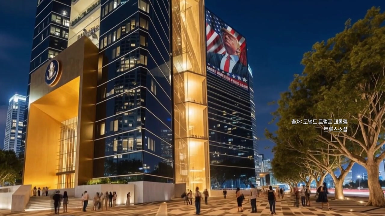 바로 미 플로리다주 마이애미 시내에 건설할 예정인 '트럼프 기념 도서관'인데요, 영상을 보면 건물에 '트럼프'라는 큼지막한 이름과 함께 성조기가 박혀 있고요, 꼭대기에는 역시 성조기를 상징하는 붉은색, 흰색, 파란색으로 칠한 첨탑이 우뚝 솟아 있습니다.