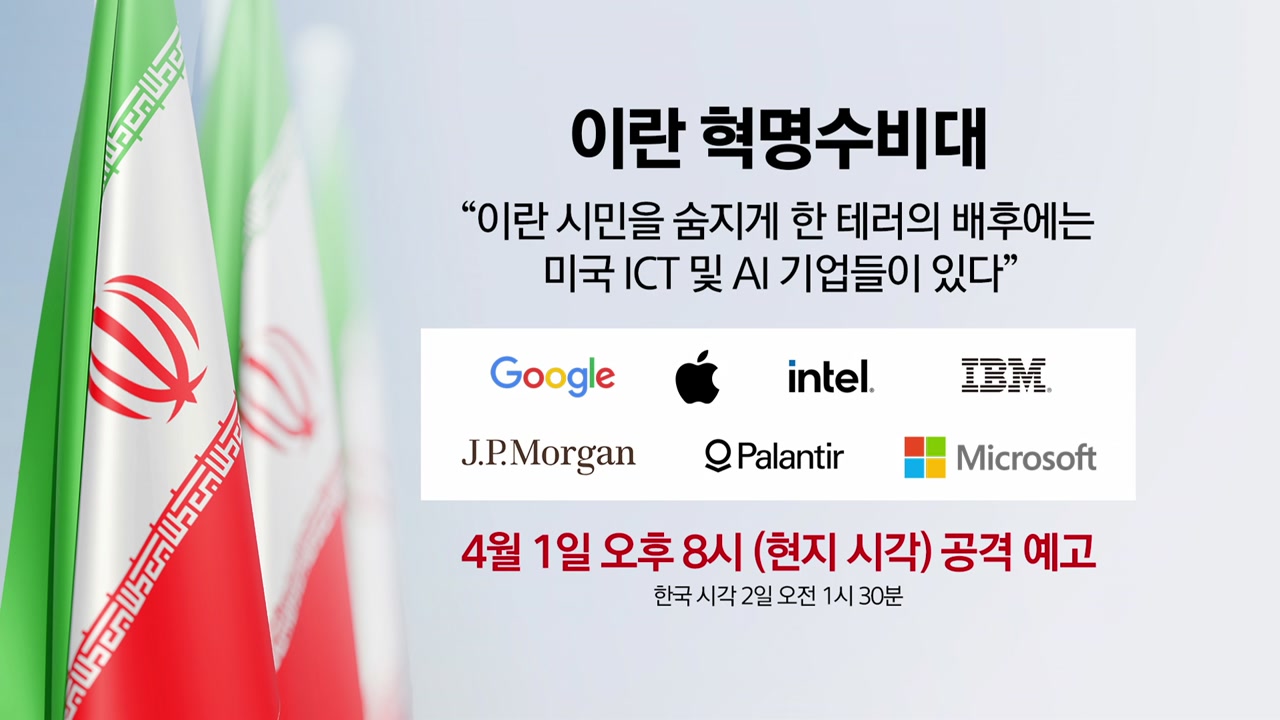 "이란 시민을 숨지게 한 테러의 배후엔 미국 IT 기업들이 있다며, 한국 시간 내일 새벽 1시 반부터 공격하겠다고 밝혔고, 이스라엘 공격으로 숨진 전 해군 사령관의 생전 영상도 공개했습니다.