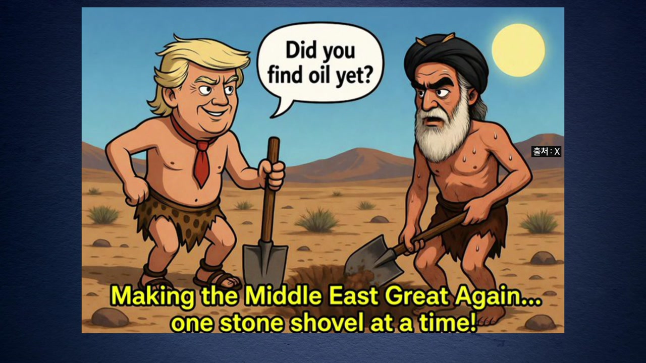 어제 트럼프의 석기시대 발언 이후 이 같은 조롱 패러디 이미지도 SNS 등을 통해 확산하고 있습니다.