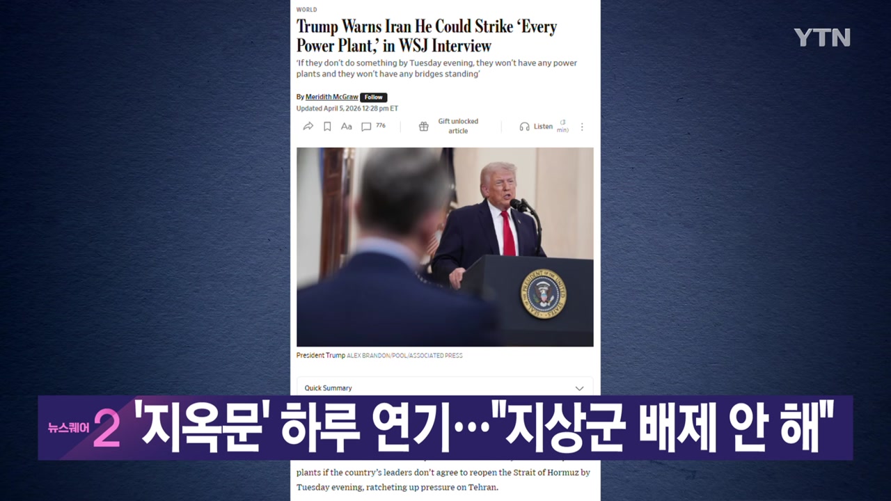 ■ 트럼프 미국 대통령이 이란과의 협상 시한을 모레로 하루 더 연기하면서, 응하지 않을 경우 모든 것을 날려버리겠다고 경고했습니다. 지상군 투입 가능성도 배제하지 않는다고 말했습니다.