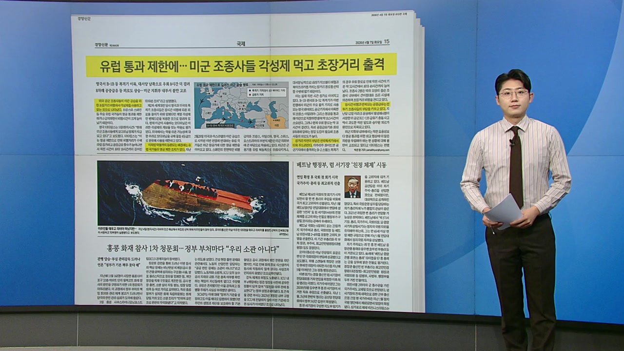 먼저 볼 경향신문 기사는 미군 조종사들이 각성제를 먹고 이란 공습을 위한 초장거리 비행에 나선다는 내용인데요. 주요 유럽 국가들이 영공 통과를 제한하거나 금지한 게 배경입니다. 이번 전쟁에서 미군의 주요 출격기지로 쓰이는 영국 페어퍼드 공군기지에서 이란으로 직항하면 왕복 10시간 반. 하지만 유럽 국가들이 영공 통과를 제한함에 따라 우회 항로는 약 18시간으로 8시간이나 더 걸립니다. 특히 공중급유를 여러 차례 해야 해서 조종사들의 피로도가 높을 수밖에 없고미국 본토에서 출격하는 전략폭격기의 경우 장거리 작전 부담이 더 늘어납니다. 이런 배경에서 조종사들에게 각성제가 지급되고 있는 거죠. 지난달 발생한 급유기 충돌사고도 과도한 작전 밀도와 승무원 피로가 원인으로 꼽히고 있습니다. 미군 지휘부 내부에서도 현 상황에 대해 불만이 고조되고 있다고 합니다.