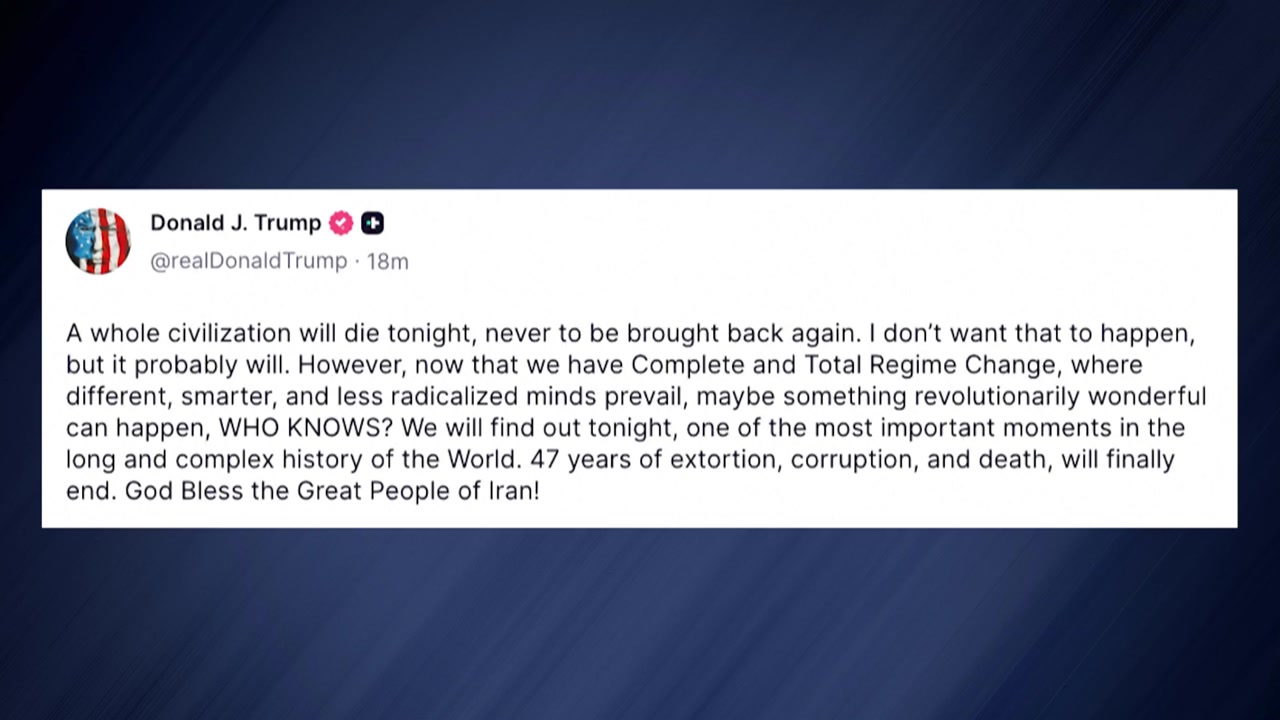 도널드 트럼프 미국 대통령이 이란에 대한 공격 유예 시한인 내일 오전 9시를 앞두고 "하나의 문명이 완전히 사라질 것"이라며 이란을 압박하는 메시지를 보냈습니다.