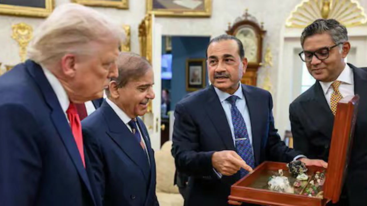 트럼프 대통령 바로 옆에 국가 원수인 셰바즈 샤리프 파키스탄 총리가 앉아 있고, 무니르는 조금 더 떨어져 앉아 있죠.