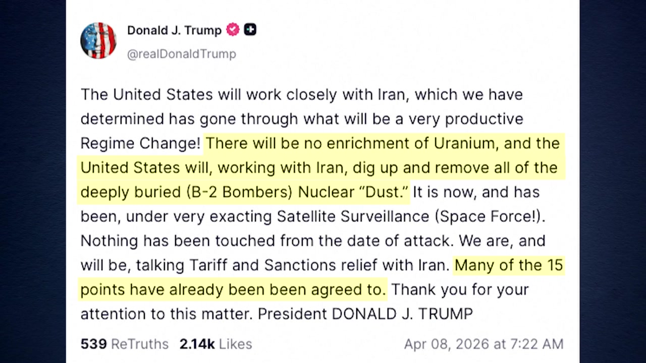 도널드 트럼프 미국 대통령은 현지시간 8일 자신의 SNS를 통해 "이란의 우라늄 농축은 더 이상 이뤄지지 않을 것"이라고 밝혔습니다.