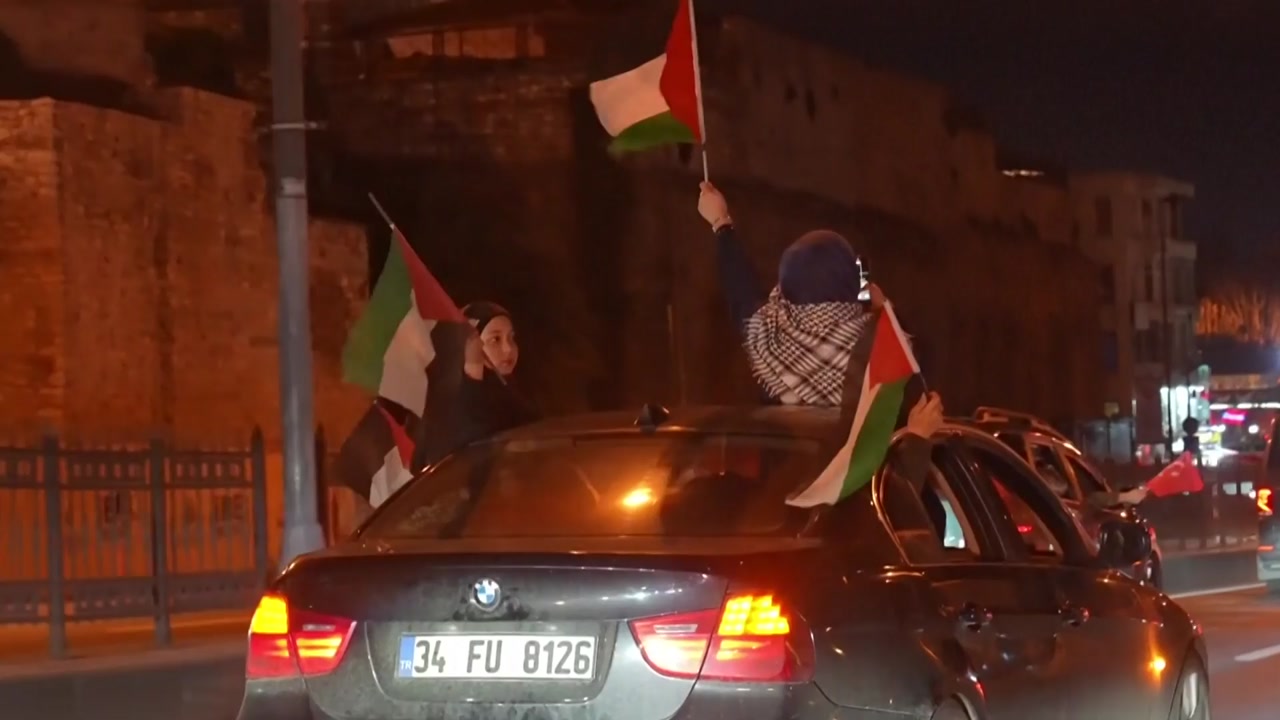 현지 시간 8일 튀르키예 이스탄불 도로에서 팔레스타인과 튀르키예 국기를 단 차량 수백 대가 이스라엘과 미국의 군사 행동에 항의해 경적을 울리며 미국 영사관 앞까지 줄지어 행진했습니다.
