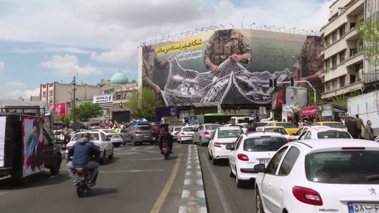 저게 이란 테헤란 광장의 한 광고판인데 호르무즈 해협은 닫혀 있다면서 미 공군기를 잡아들이는 듯한 이런 그림을 그렸더라고요.