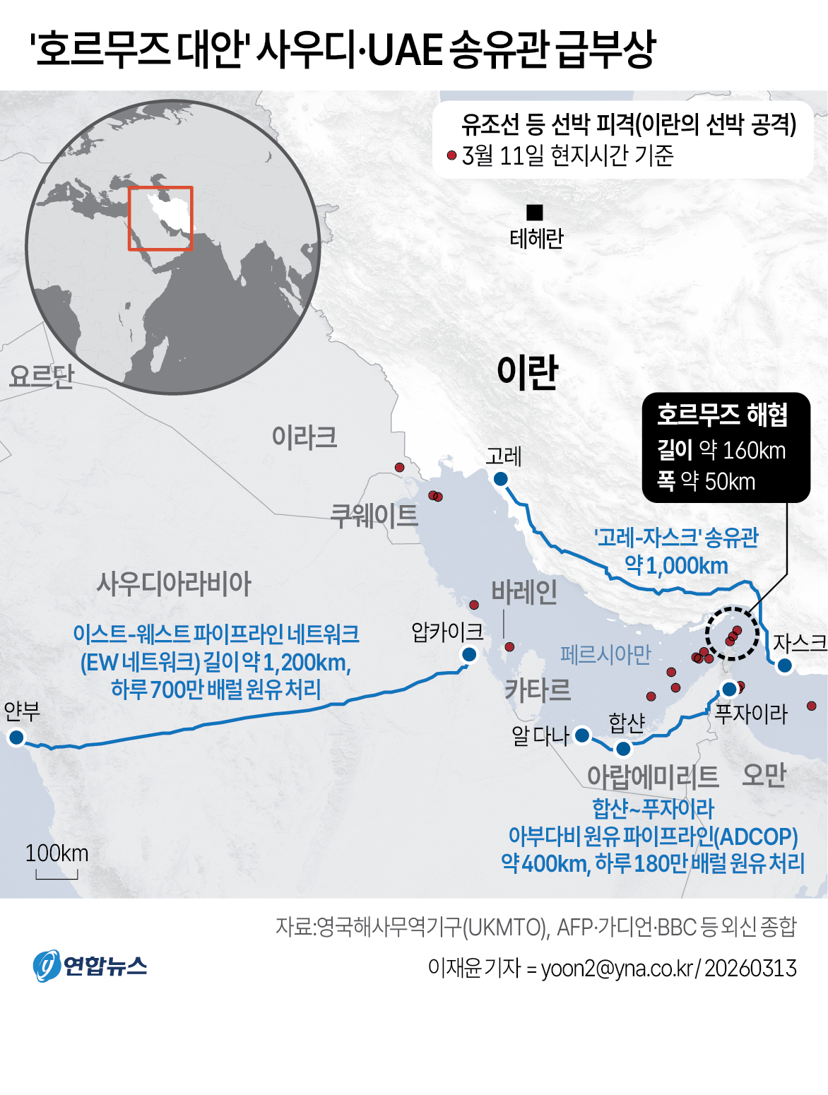 지도를 펼쳐보면, 호르무즈 해협은 페르시아만 끝자락, 이란과 오만 사이에 낀 가느다란 물길입니다. 가장 좁은 구간은 불과 33킬로미터. 서울에서 수원 정도 되는 거리입니다.