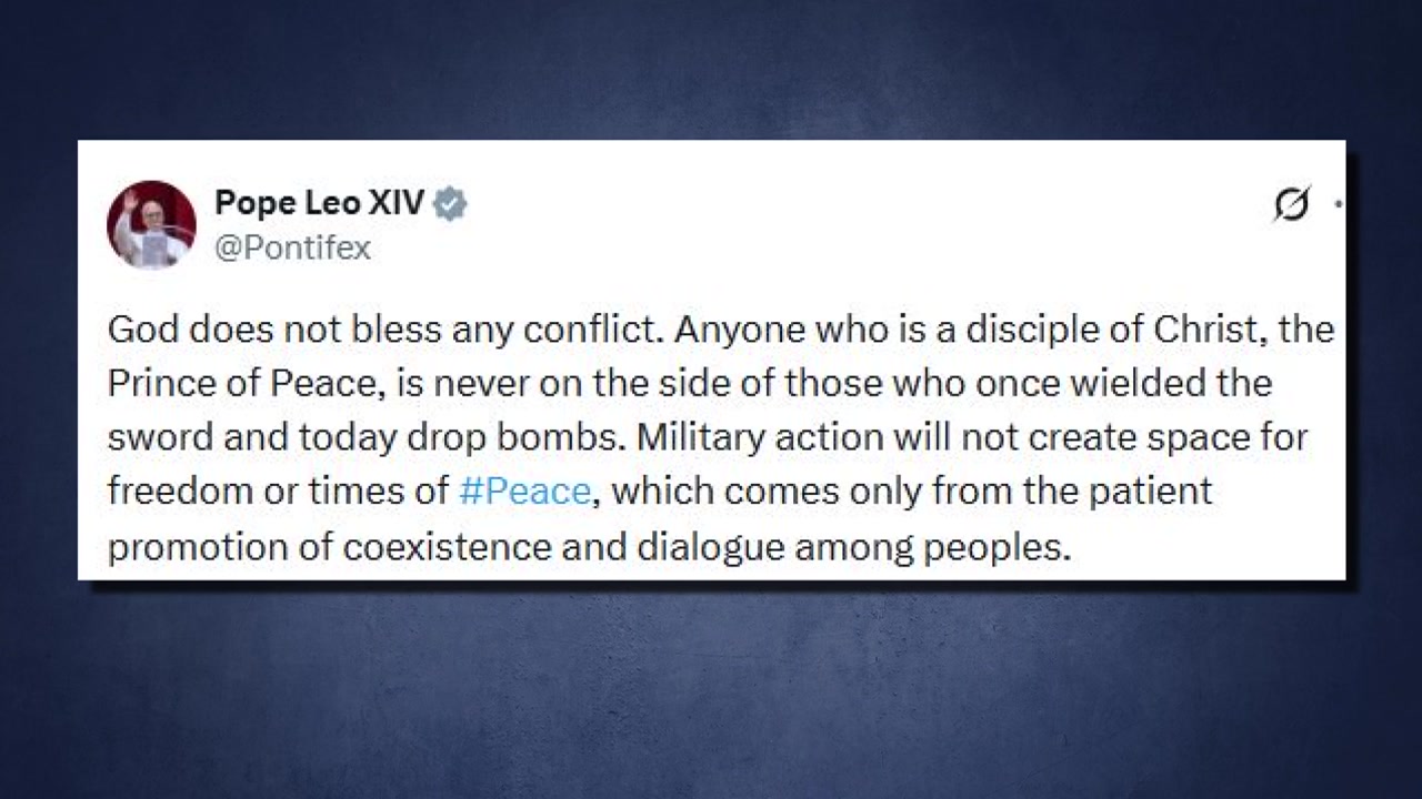 레오 14세는 엑스에 올린 글에서 "그리스도의 제자라면 과거에 칼을 들었고 오늘날에는 폭탄을 떨어뜨리는 이들의 편에 서지 않는다"고 밝혔습니다.
